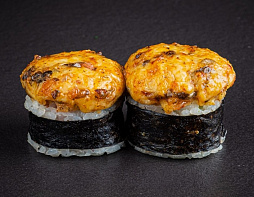 - угорь, тигровая креветка, сыр, японский омлет, нори, рис