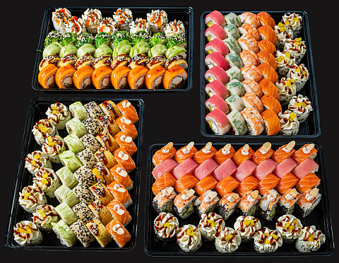В ПОДАРОК – 500 мл. соевого соуса; ролл «Филадельфия Авокадо» - 8 шт., ролл «Филадельфия Магуро Манго» - 8 шт., ролл «Филадельфия Бали» – 8 шт., ролл «Эльбрус Новогодний» – 8 шт., ролл «Эби Креман» – 8 шт., ролл «Филадельфия Сяке» – 8 шт., ролл «Филадельфия Магуро Манго» – 8 шт., ролл «Филадельфия с креветкой» – 8 шт., ролл «Лосось и руколла в рисовой бумаге» – 8 шт., ролл «Эби Креман» – 8 шт., ролл «Филадельфия Бали» – 8 шт., ролл «Мания с креветкой» – 8 шт., ролл «Калифорния в кунжуте» – 8 шт., ролл «Айсберг Муругай» – 8 шт., ролл "Блюз терияки" - 8 шт., ролл «Оранж Сальмон» – 8 шт. ролл «Мания с креветкой» – 8 шт., ролл «Грин Эби Кроунинг» – 8 шт., ролл «Айсберг Муругай» – 8 шт., ролл "Бьюти" - 8 шт.
